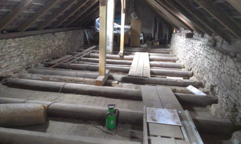 Rekonstrukce spočívala v odstranění starých podlah, ošetření krovu proti škůdcům, zateplení, zhotovení příček a stropů ze sádrokartonu, výmalby a přistavění arkýřů a balkonu. Celou rekonstrukci prováděla naše firma včetně návrhu interiérového designu.