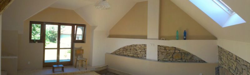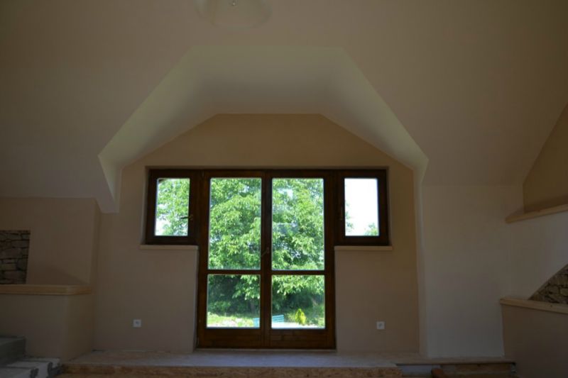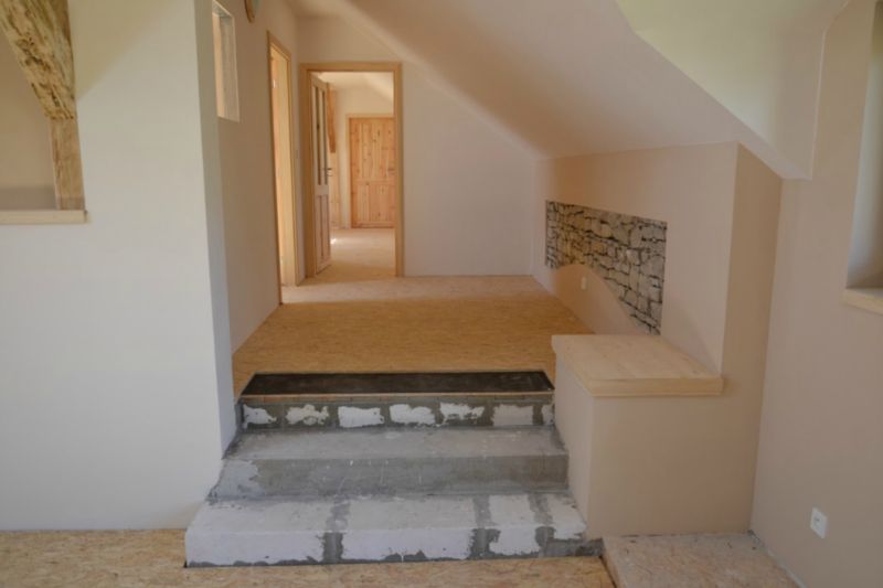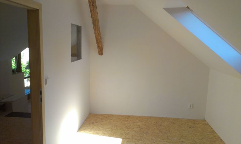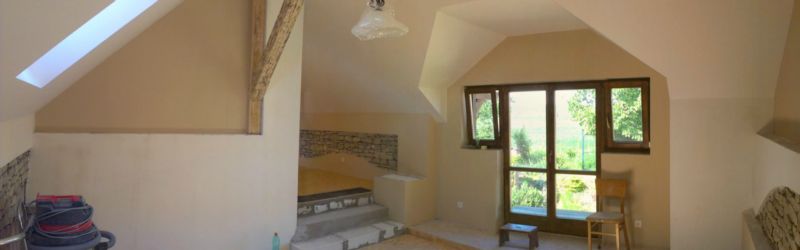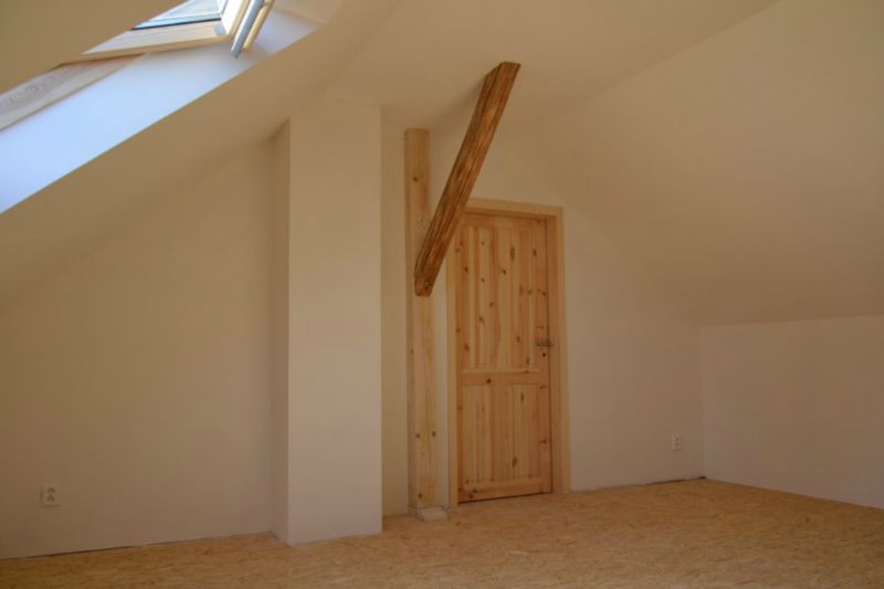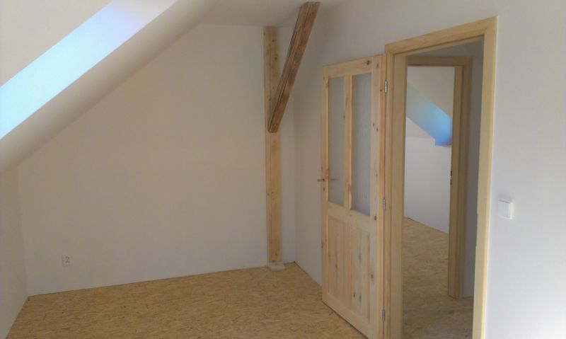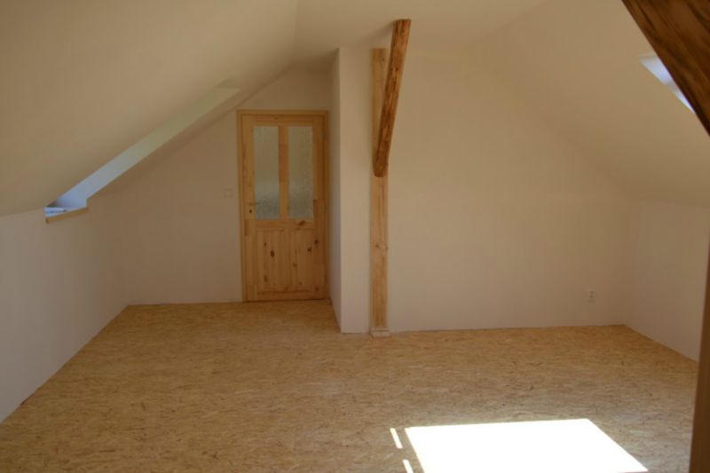 Rekonstrukce spočívala v odstranění starých podlah, ošetření krovu proti škůdcům, zateplení, zhotovení příček a stropů ze sádrokartonu, výmalby a přistavění arkýřů a balkonu. Celou rekonstrukci prováděla naše firma včetně návrhu interiérového designu.
