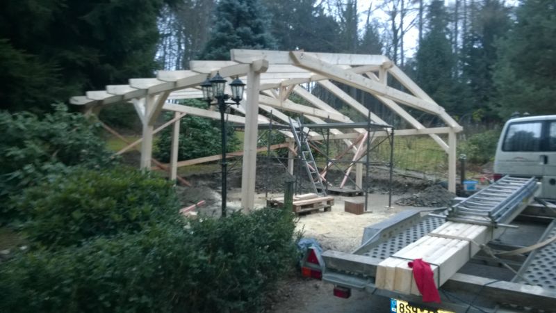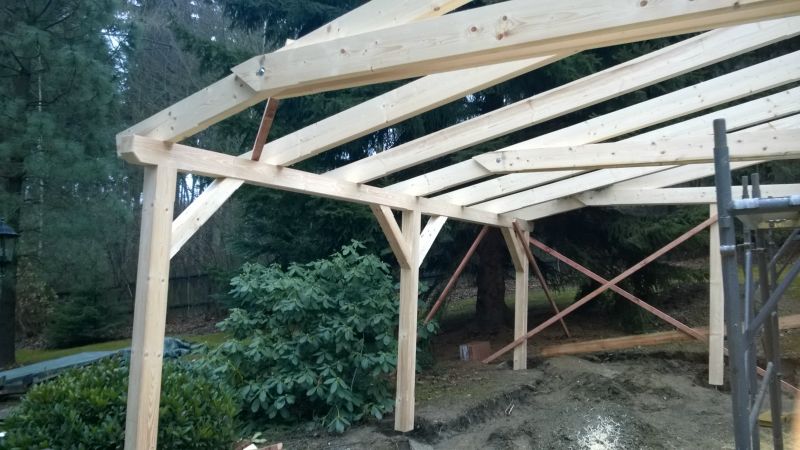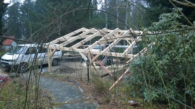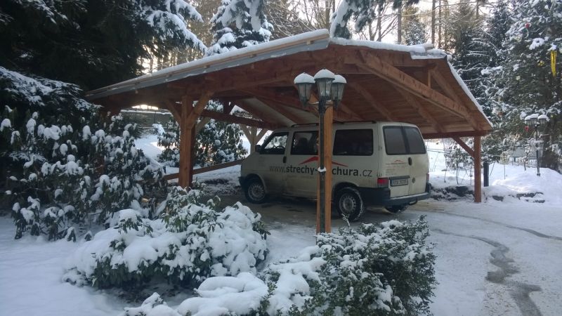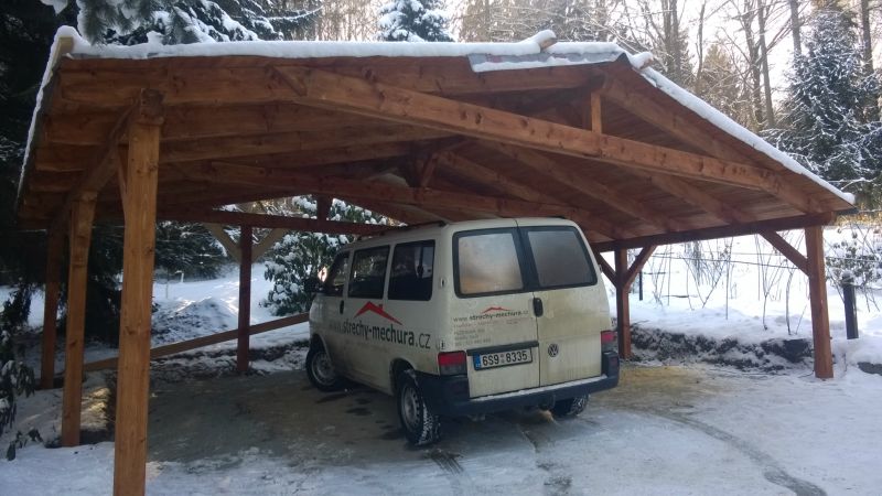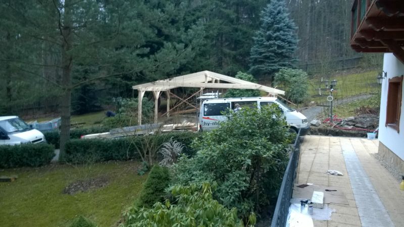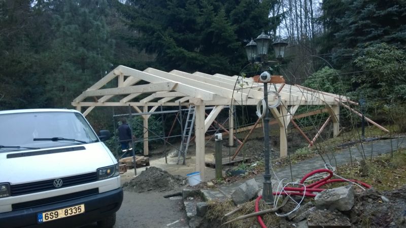 Postavena celé konstrukce včetně řezání a hoblování. Střešní krytinu dodávala jiná firma.