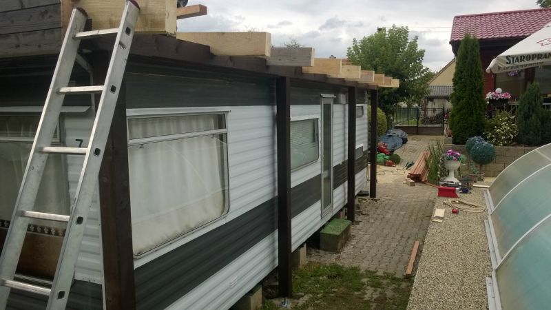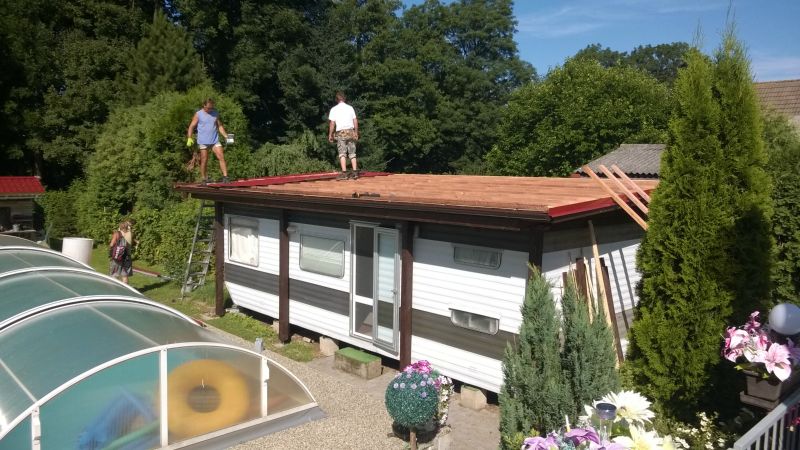 Rekonstrukce střechy na chatě v Drahlovicích, výroba přístřešku na mobilní dům a jeho následná stavba. Majitelé této stavby jsou Vám ochotni poskytnout telefonickou referenci na naší firmu. V případě zájmu nás kontaktujte pro zaslání telefonního čísla na majitele.